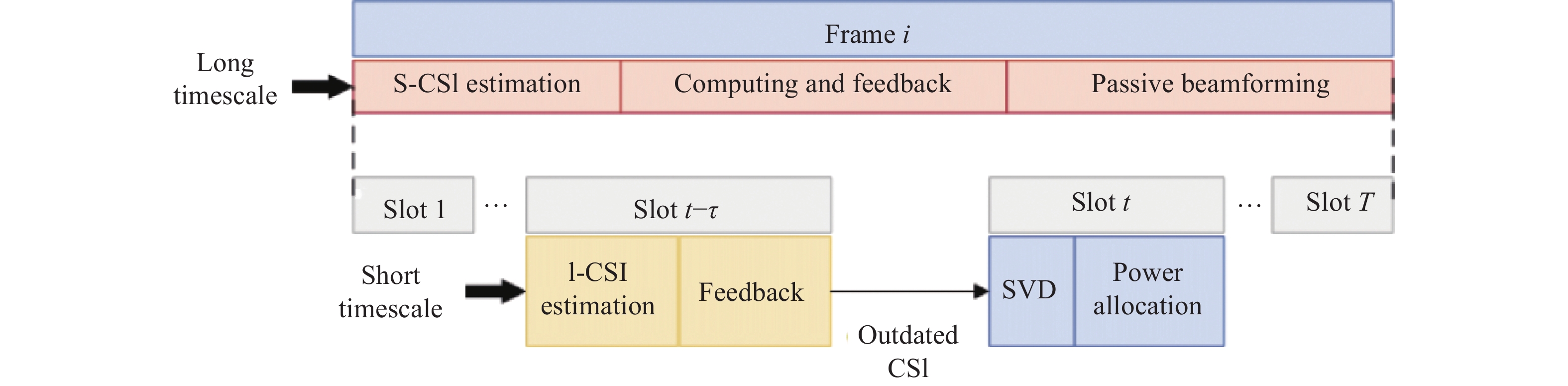 We propose a TTSBF strategy, which configures the IRS once per frame based on the S-CSI and updates the beamformers frequently every slot according to the O-CSI. As illustrated in Fig. 2, within each frame, the large-scale fading